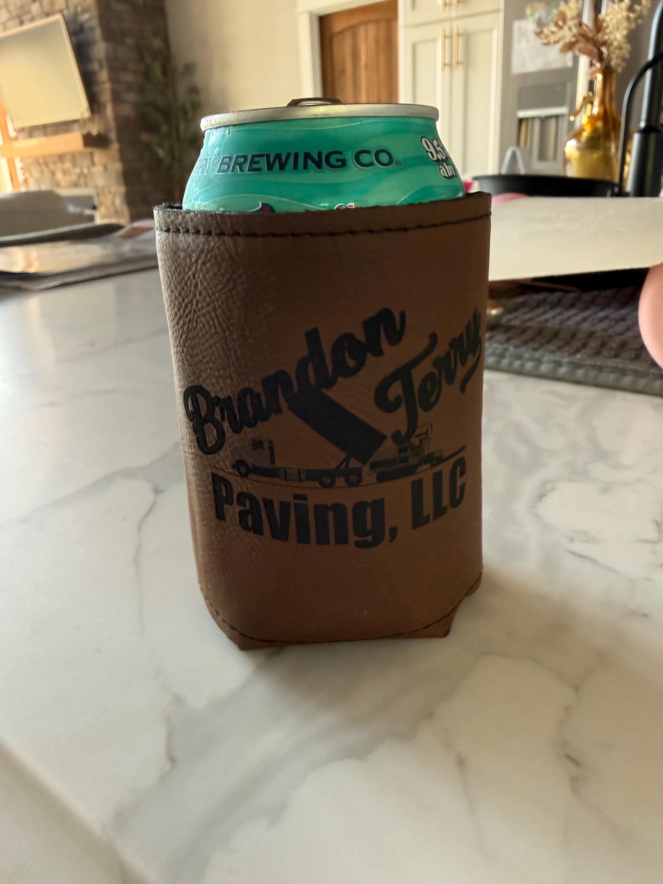 Hold your beverage in style with our custom laser-engraved faux leather can Koosies. These drink holders are designed for CANS and not bottles.
